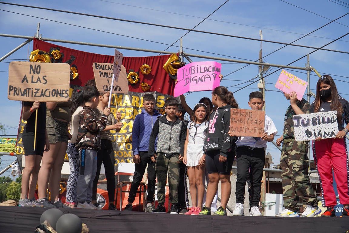 Con motivos del festejo, los estudiantes realizaron números artísticos de baile, canto y una representación de los últimos 50 años de historia argentina, desde que la institución fue fundada.