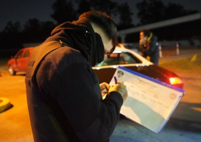 Roberto Coronel, supervisor del Grupo de Prevención Motorizada de Merlo, explicitó sobre el trabajo: “Les pedimos cédula verde, registro y seguro del vehículo y el DNI de la persona. Esto una forma de prevenir los ilicitos, tanto para la gente que viene de trabajar como los que salen.