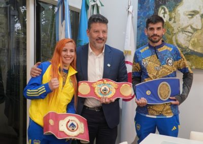 Luego de su llegada a la Argentina, el Jefe Comunal recibió a la deportista y aseguró que “es un orgullo enorme tener a una representante así en nuestro pueblo, es la primera boxeadora que logra traer de Estados Unidos a la Argentina tres títulos”.