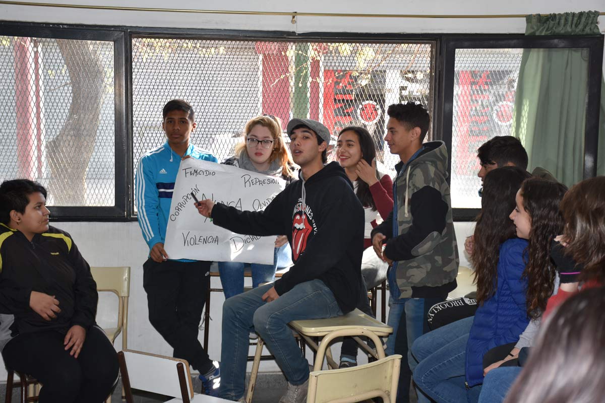 Durante el taller, los chicos se separaron en comisiones, trabajaron en las temáticas que tenían que presentar para finalmente realizar una reunión conjunta donde se expusieron los trabajos de ambos turnos (mañana y tarde) y luego compartieron una merienda.