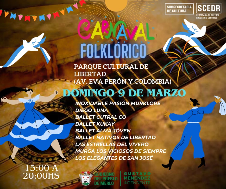 La Subsecretaría de Cultura de Merlo te invita a disfrutar de actividades culturales gratuitas en el marco de la temporada de Carnavales.