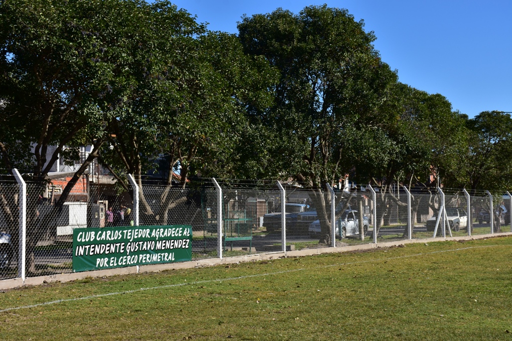 El intendente Gustavo Menéndez y funcionarios del Gobierno del Pueblo de Merlo estuvieron presente en el emblemático club Carlos Tejedor de Parque San Martín para la inauguración del nuevo cerco perimetral que abarca las canchas de la institución.
