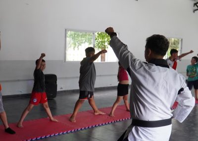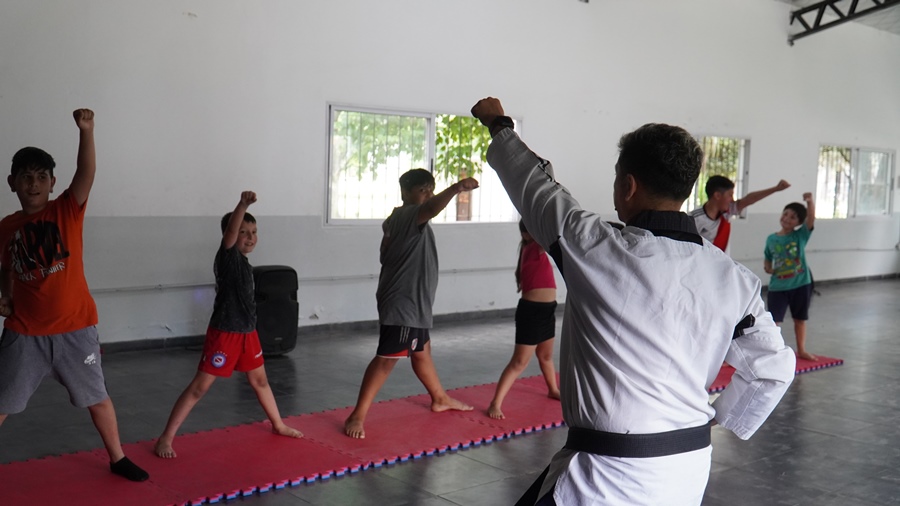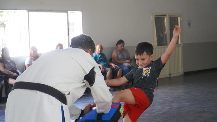 Más de 50 chicos participaron de la última clase del año de las Escuelas Deportivas Municipales de Taekwondo y Boxeo, en el Polideportivo El Triángulo, de Agustín Ferrari.
