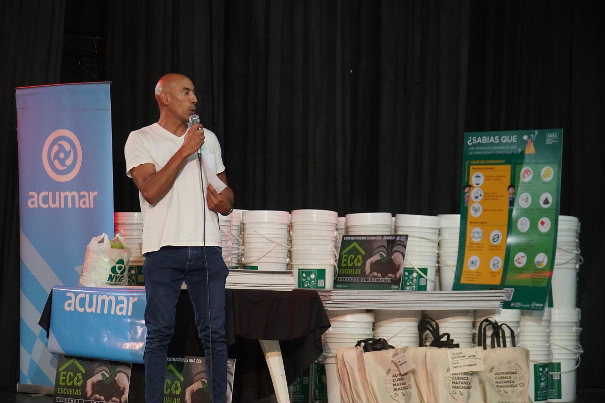 La Secretaría de Educación, Deportes y Recreación realizó el cierre de “Escuelas por la Cuenca” y el Programa Eco-Escuelas en el Teatro Municipal de Merlo con la presencia de la intendenta Karina Menéndez, autoridades de Acumar, Comirec, INTA y el Ministerio de Ambiente de la Nación.