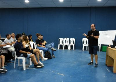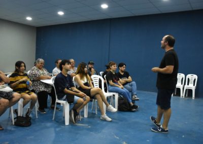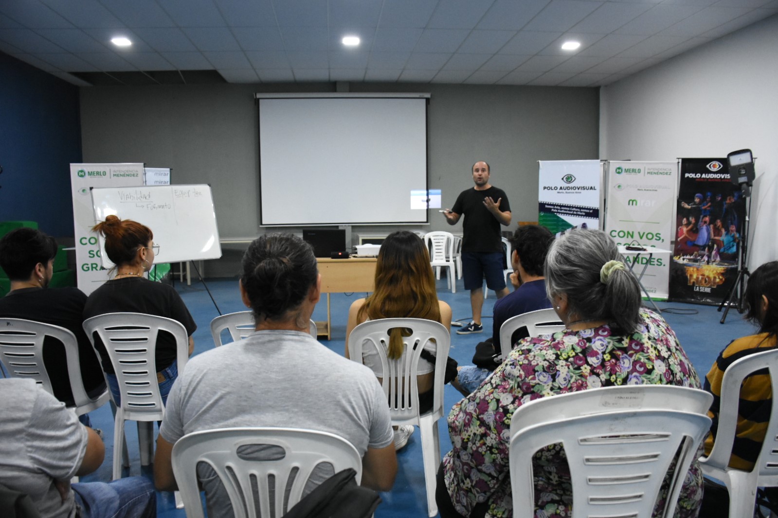 En este taller, dictado por profesionales del área, los vecinos y vecinas aprenden desarrollar una producción cinematográfica completa, desde la idea, la producción, la filmación hasta la exposición.