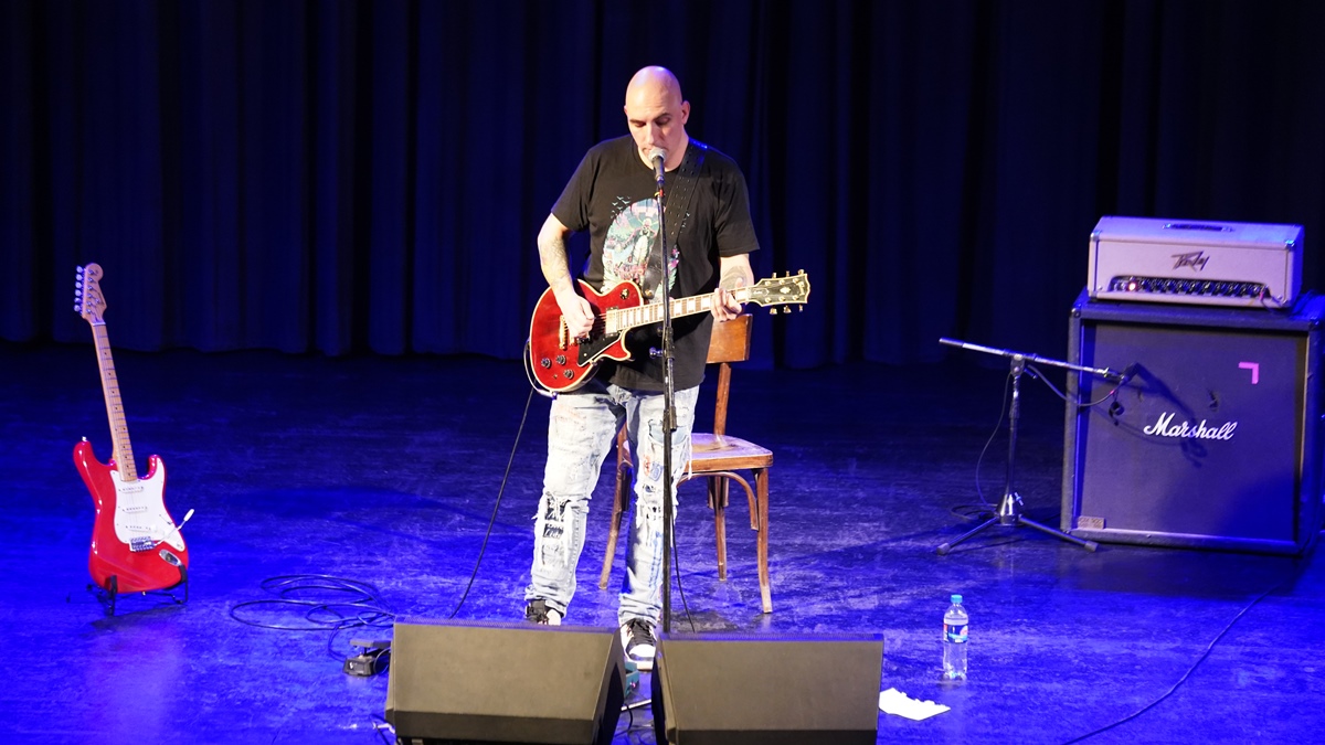 El artista, integrante de Los Fundamentalistas del Aire Acondicionado y La Mono Trío, se presentó en la sala Enrique Santos Discépolo para compartir sus experiencias dentro y fuera de los escenarios en el marco de una charla participativa. Además, interpretó canciones icónicas de su carrera.