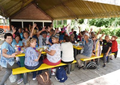 Cerca del mediodía se les sirve un refrigerio y tiene lugar un baile a modo de cierre de jornada. Las actividades varían según la cantidad de abuelos que haya en el día y la movilidad de cada abuelo, puesto que se busca integrarlos a todos.