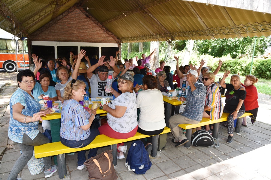 La colonia se divide en dos contingentes de 300 abuelos cada uno. A cargo están 9 profesores y dos coordinadores. Los abuelos llegan al predio con los micros que se disponen para sus traslados. Los espera un desayuno de bienvenida para luego dar paso a las actividades del día.