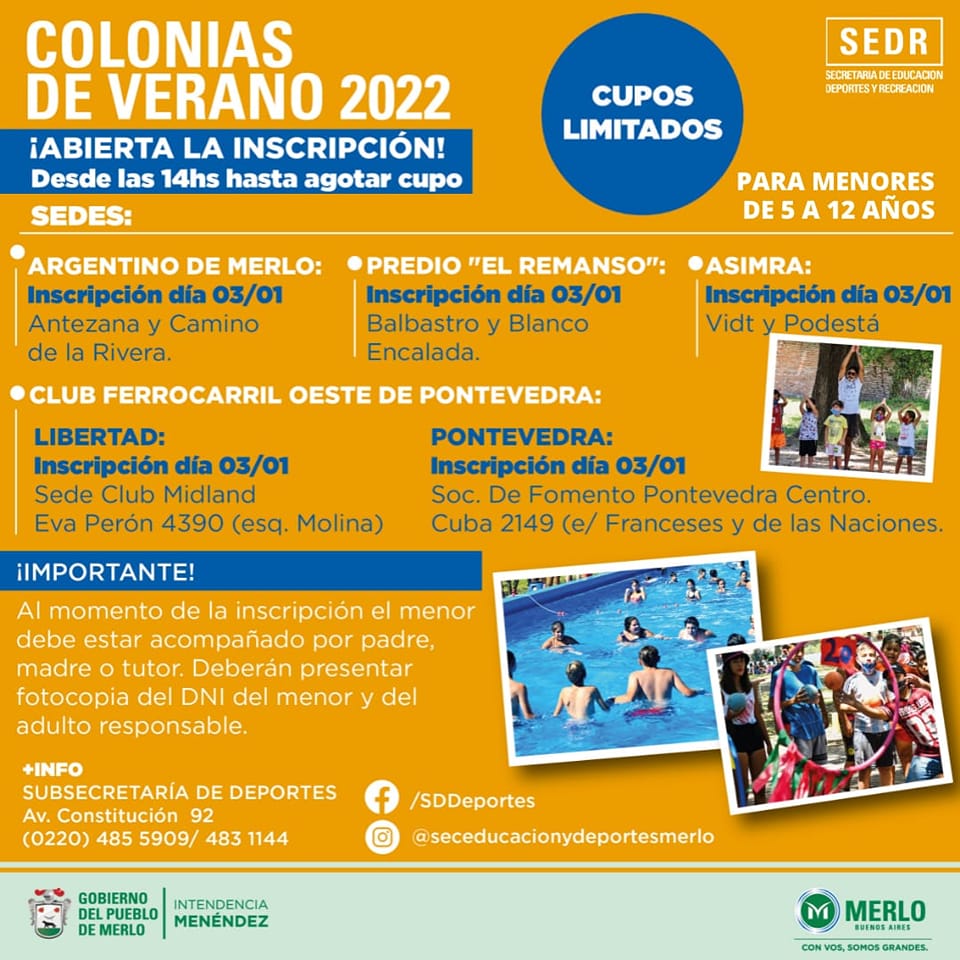 Además, el municipio lleva a cabo las Colonias de Merlo Inclusivo, para chicos con discapacidad, y de adultos mayores que comenzarán el 4 de enero. Para más información visitá la página de Facebook de la Subsecretaria de Deportes de Merlo.