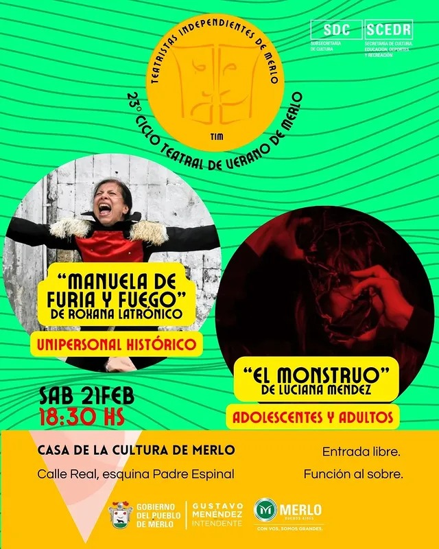 Para más información, podes comunicarte con la Subsecretaría de Cultura. Dirección: Colón y Riobamba 1° Piso – Tel. (0220) 483-2403 / 485-4213 / 486-3241. Email: subsecretariaculturademerlo@gmail.com