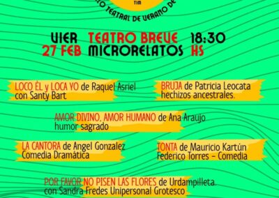El sábado 21 se presentaron “Manuela de furia y fuego” de Roxana Latrónico y “El monstruo” de Luciana Méndez. En tanto, el domingo 22, el grupo Las Pandoras interpretó “Peligro, vecinas en la cocina” y Recordando Canciones Infantiles expuso “Cantereando”.