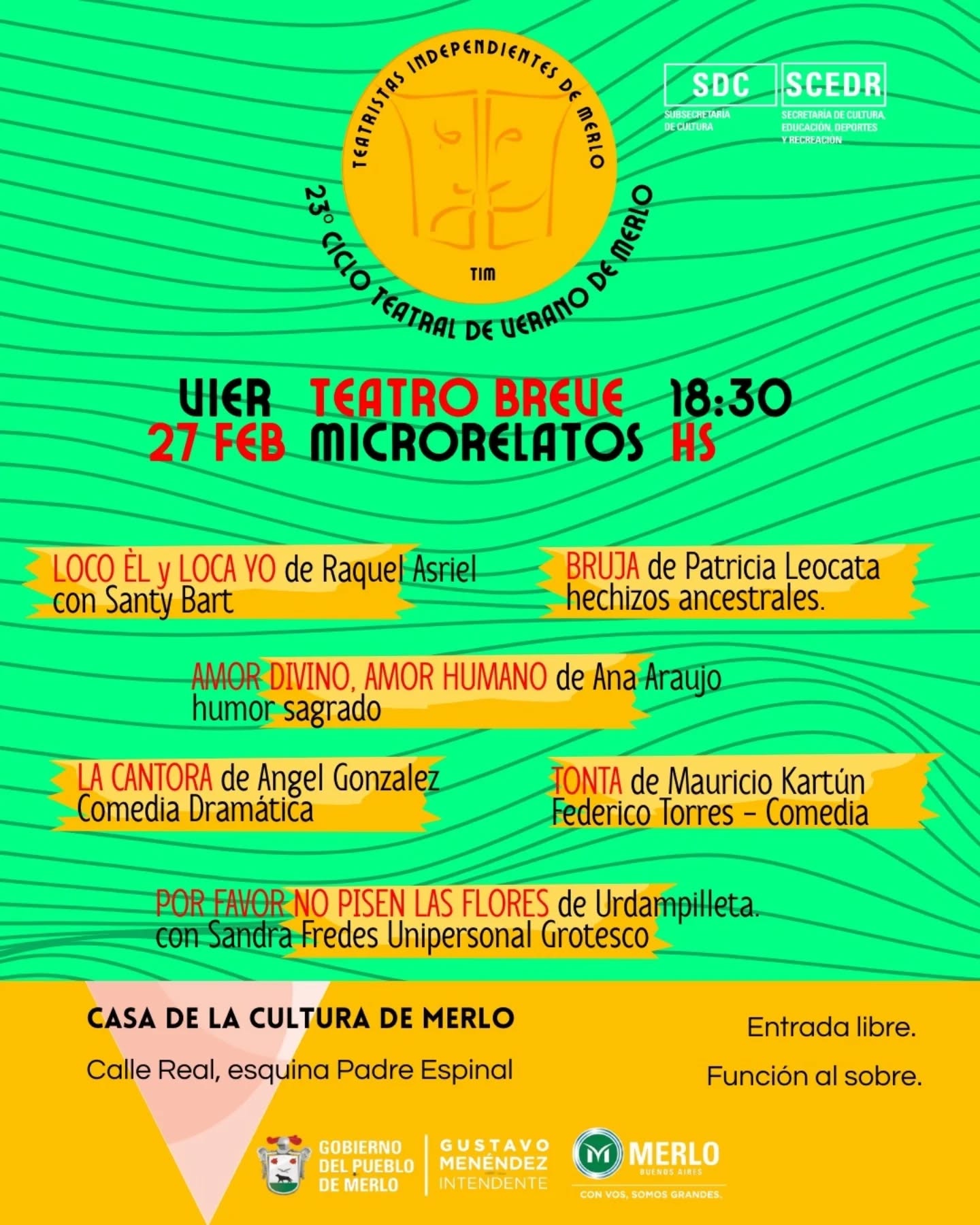 Una nueva edición del Ciclo Teatral Independiente de verano convocó al público Merlense. Talentosos actores y actrices presentaron sus obras en la Casa de la Cultura, un espacio que volvió a convertirse en punto de encuentro para los vecinos.