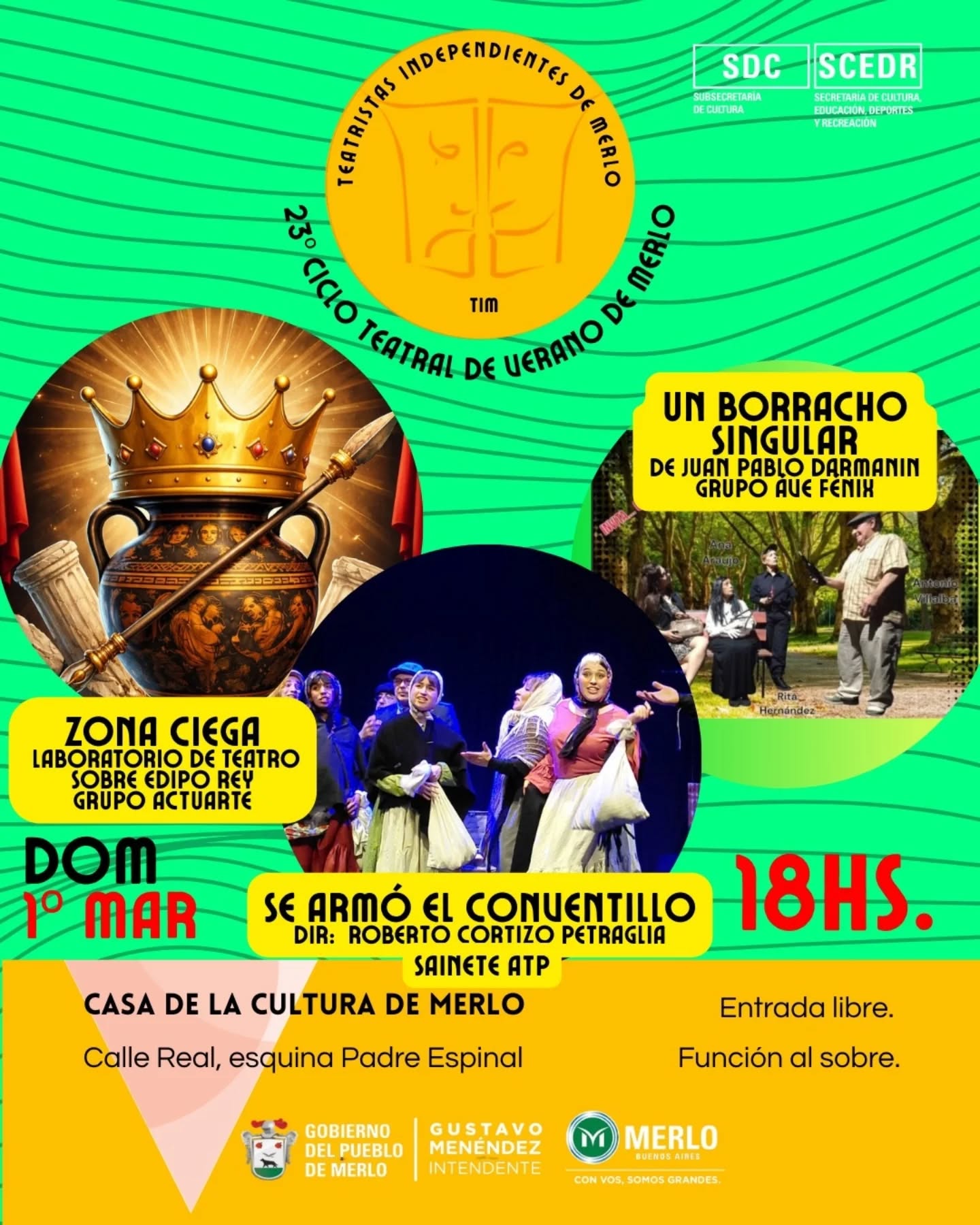 Continuamos trabajando por la cultura en Merlo, con el impulso del Intendente Gustavo Menéndez, que permite el desarrollo de estas propuestas que fortalecen el arte y el talento local, con encuentros, ciclos teatrales y jornadas abiertas a toda la comunidad.