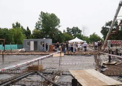En el inicio de la construcción acompañaron al mandario local, la secretaria de Cultura, Educación, Deportes y Recreación, Silvana Zahana, el secretario de Obras y Servicios Públicos Guillermo Busto y la Presidenta del HCD, Alejandra Hahn junto a concejalas de Merlo.