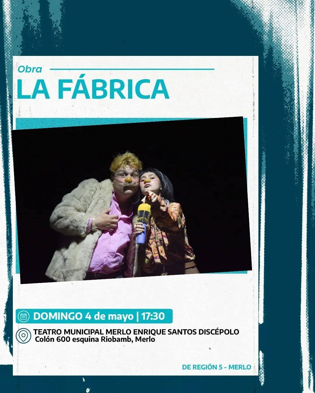 - Domingo 4 de Mayo – Obra: La Fábrica, 17:30 hs / Actividad: Asamblea Regional, 18:30 hs / Actividad: Acto de Cierre, 20 hs.