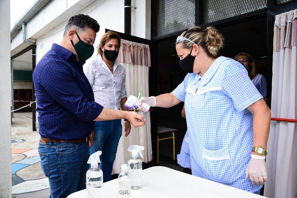 El Intendente Gustavo Menéndez acompañó a los alumnos de 1° grado de la EP 79 y del Jardín N° 921 que comenzaron con las clases presenciales después de un año sin asistir a las instituciones educativas.