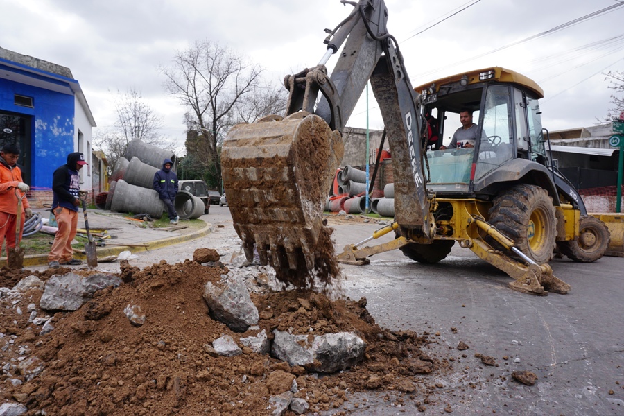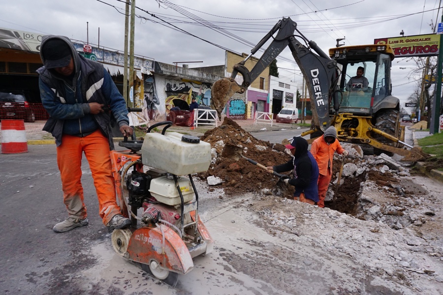 La Secretaría de Obras y Servicios Públicos ejecuta trabajos hidráulicos en Av. de la Calle Real y Quintana, Merlo Sur.