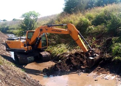 Trabajadores municipales realizaron el dragado, y conformación de talud del Arroyo Las Viboras, retirando basura, ramas y cortando las malezas ubicadas en las márgenes de este desde la calle Medina hasta la Ruta 1003.