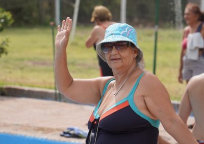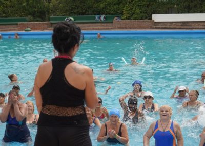 Las jornadas en Ferrocarril Oeste de Pontevedra comienzan a las 8 de la mañana, con un desayuno nutritivo. Luego, se llevan adelante las actividades en el predio, entre las que se encuentra el aquagym. Los adultos mayores contaron con profesionales de primer nivel para realizar la actividad de forma segura.