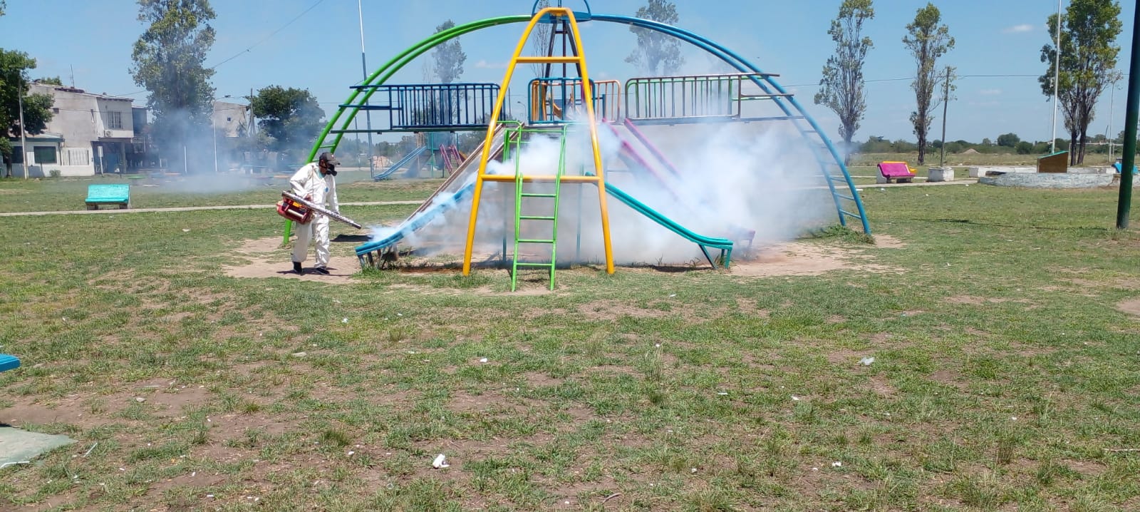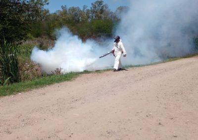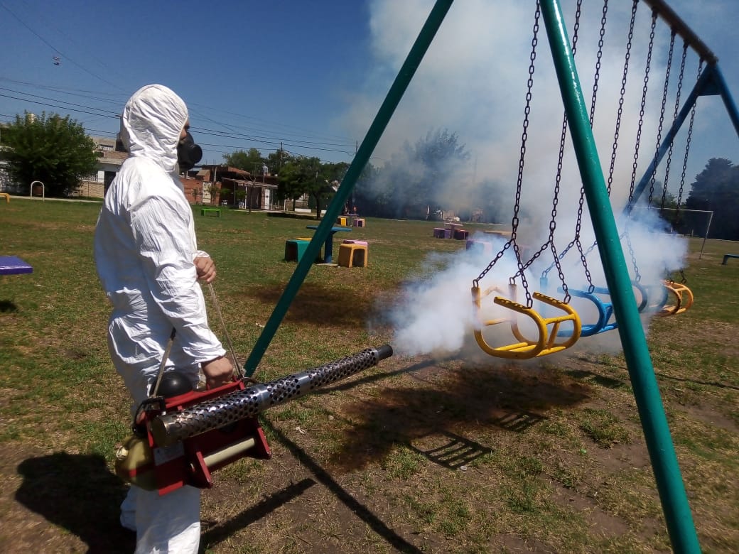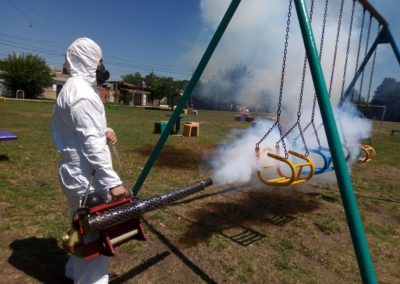 El equipo de Fumigación de la Secretaría de Delegaciones de Merlo realiza operativos a diario en barrios y espacios públicos, para prevenir y evitar la proliferación de insectos y plagas.