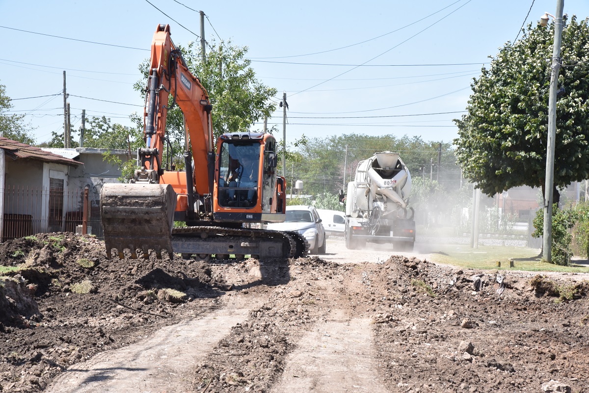 Los trabajos que se realizan en la calle Paso de Los Patos entre Realico y Arcos implican la construcción de nuevas cuadras de pavimento, con cordón cuneta de hormigón.