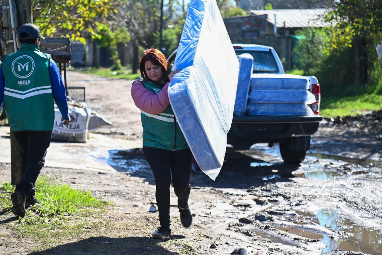 Los operativos territoriales dispuestos por el Gobierno Municipal avanzan en el relevamiento y en la distribución de mercadería para ayudar a los merlenses afectados por el temporal del pasado fin de semana.