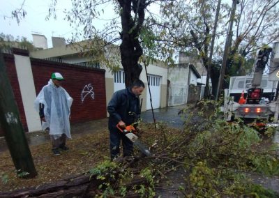 Los equipos de trabajo realizan tareas recolección de ramas y troncos caídos, para liberar los desagües y garantizar el correcto escurrimiento del agua, lo que contribuye a evitar obstrucciones en la vía pública y mejorar la circulación.