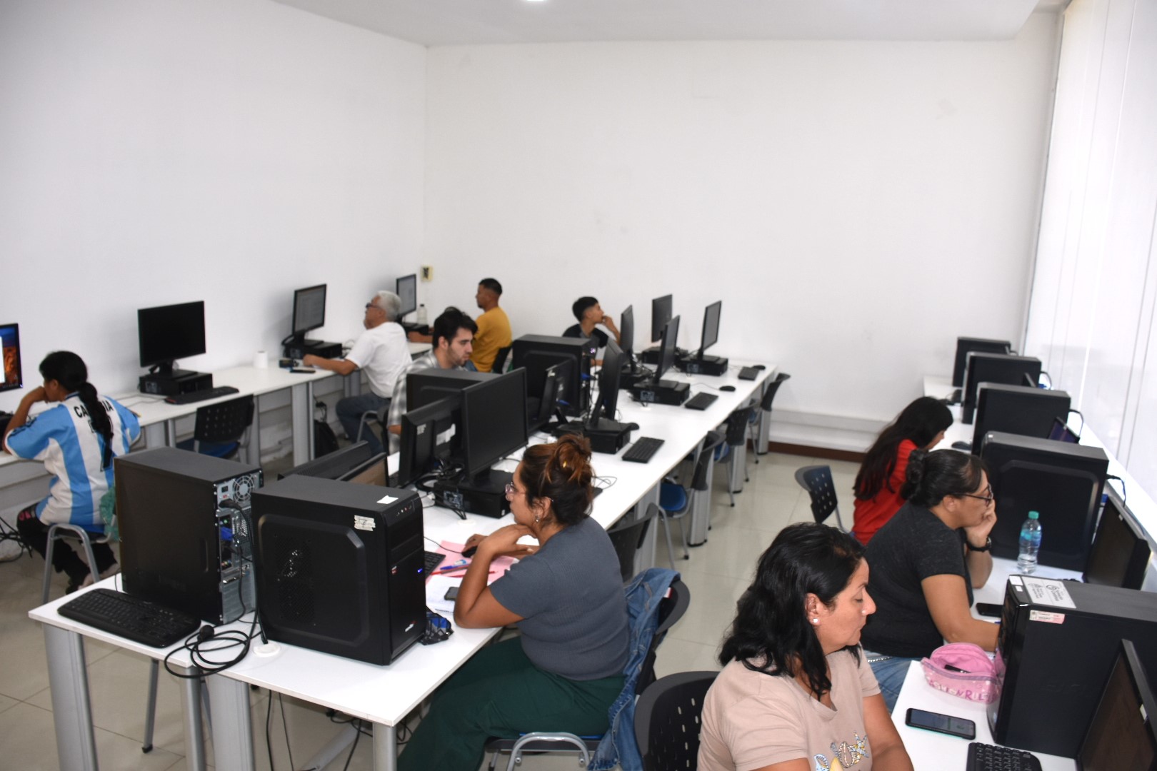 Vecinos y vecinas se capacitan en los cursos con salida laboral que la Subsecretaría de Trabajo, Empleo e Integración Laboral de Merlo brinda en convenio con SMATA. Informática Básica forma parte de la oferta académica. Para mayores de 18 años, sin límite de edad.