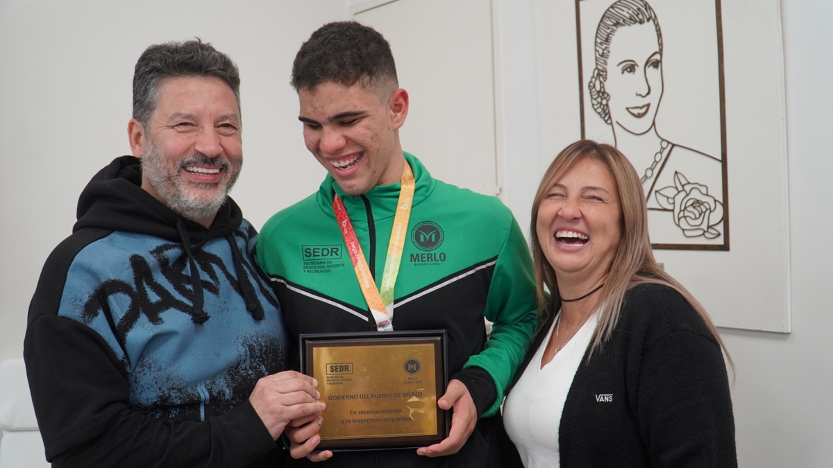 Desde el Estado Municipal se acompaña a los atletas en su camino como profesionales de alto rendimiento. En este caso, los dos competidores pertenecen al programa “Merlo Inclusivo” y se destacaron en sus respectivas disciplinas. También, las autoridades les dieron una placa en reconocimiento a su trayectoria deportiva.