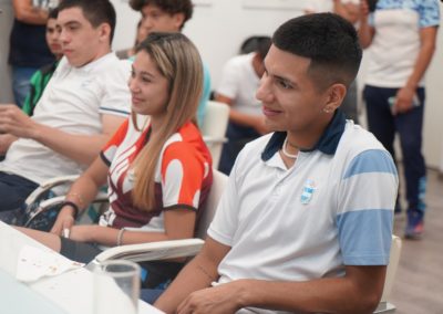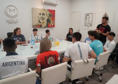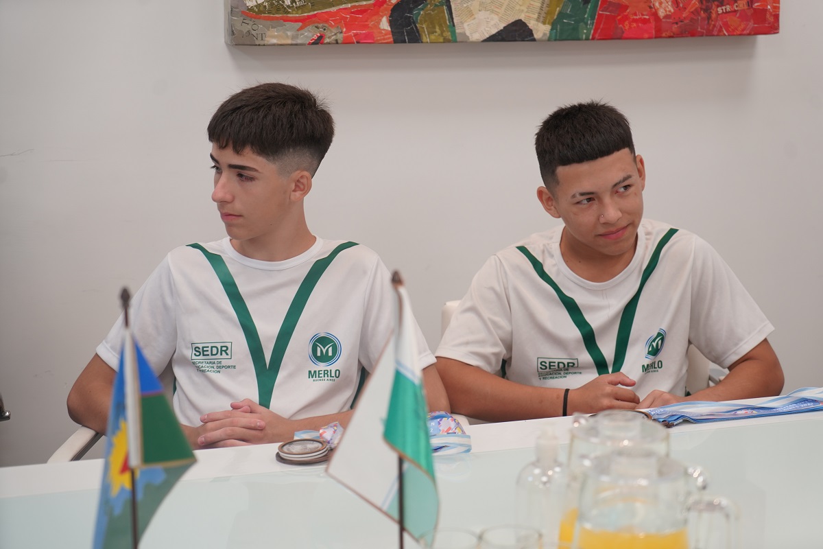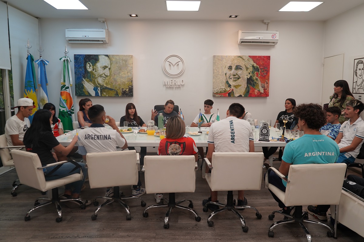 Karina Menéndez recibió a deportistas de alto rendimiento del distrito de Merlo junto a sus familias y entrenadores en el Palacio Municipal para hablar sobre sus experiencias en sus disciplinas.