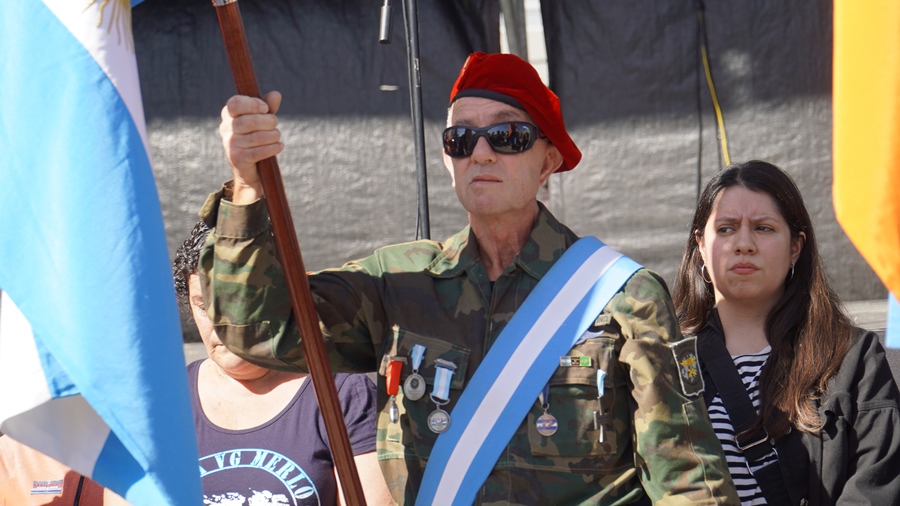“Estamos en la plaza que erigimos hace ya algunos años en honor a nuestros Veteranos de Guerra, a los que quedaron allá para siempre, de los cuales seis eran merlenses, por todos los que volvieron, por los 51 que murieron en la posguerra y por los 315 que siguen vivos y nos siguen acompañando, a 43 años del conflicto armado que enfrentó a la Argentina con una de las potencias más poderosas y más acostumbradas a la guerra” manifestó el Jefe Comunal.