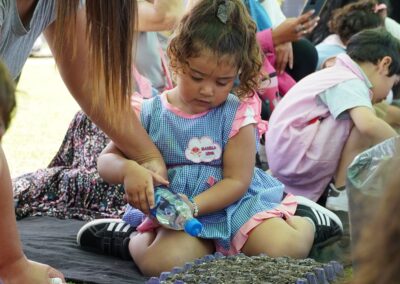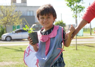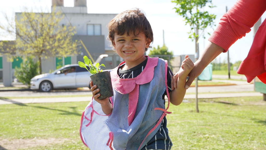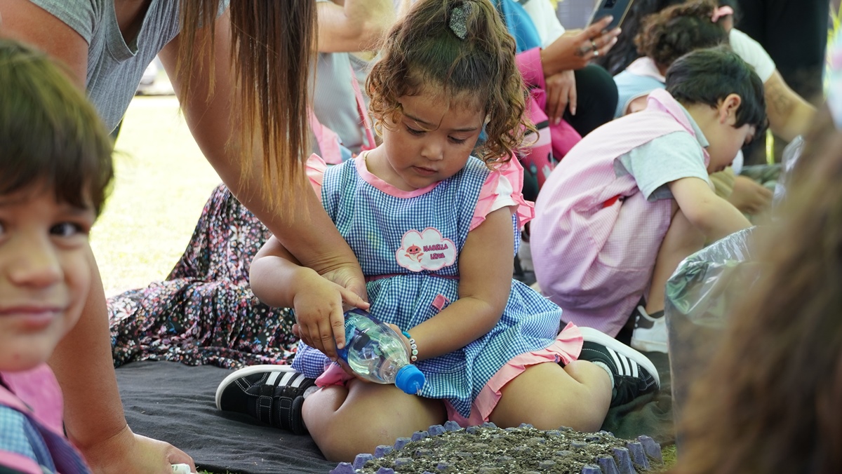La actividad se enmarcó en el programa “Manos en la Tierra” y estuvo a cargo de la Subsecretaría de Ambiente, Producción y Economía Circular. El objetivo fue que los niños tuvieran un primer acercamiento a la huerta y al cuidado del ambiente.