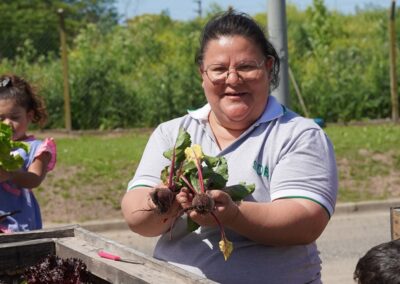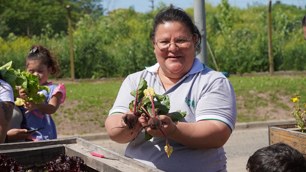 Además, los chicos visitaron los bancales de huerta donde el personal les enseñó cómo cosechar vegetales, y les entregó plantines, vegetales de la huerta, junto a una bolsa eco-reciclable, para fomentar el cuidado del ambiente.