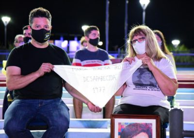 También se honró la memoria de Nora Etchenique, vecina merlense, sobreviviente de la dictadura, quien ha sido Directora del Instituto de Hemoterapia de la Provincia de Buenos Aires e impulsora del tratamiento con plasma convaleciente en pacientes con coronavirus.