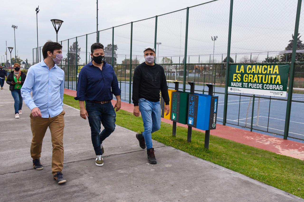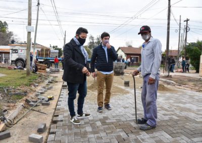 El primero de los lugares donde estuvieron presentes fue en Libertad, en las calle Magallanes entre Habana y Treinta y Tres para supervisar la obra de asfalto reticulado que se está instalando en el lugar. El segundo punto fue el lugar donde se está construyendo el Parque Industrial de Ruta 1003 y Roldan. Finalmente, caminaron por el Parque de la Unidad Nacional.