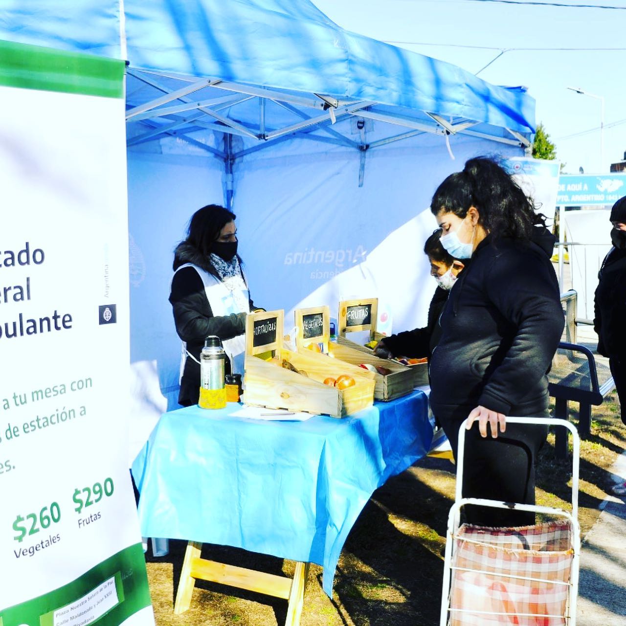 Los vecinos de Barrio Rivadavia pudieron encontrar tres bolsones con 5kg de mercadería cada uno: uno de hortalizas a $140, otro de vegetales a $260 y otro de frutas a $290, para llevar una alimentación variada y nutritiva.