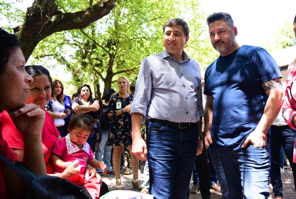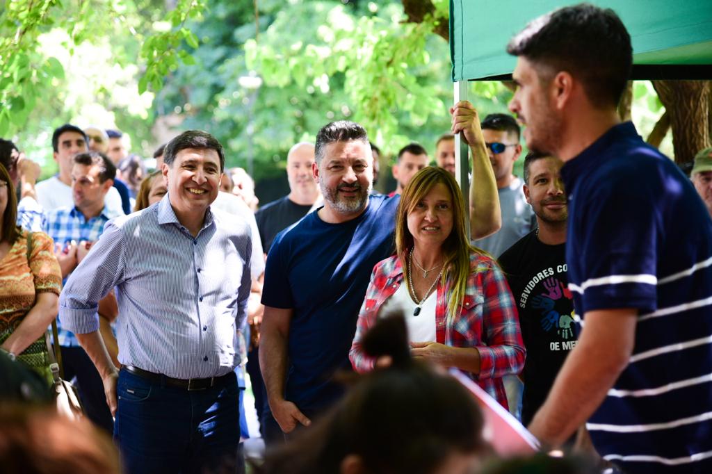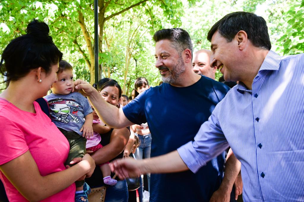 El titular de la cartera de Desarrollo Social de la Nación, Daniel Arroyo, visitó el Parque Néstor Kirchner para presenciar la entrega de las nuevas tarjetas alimentarias. Fue recibido por el Intendente Gustavo Menéndez y la Secretaria del área a nivel local Karina Menéndez.