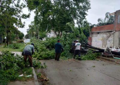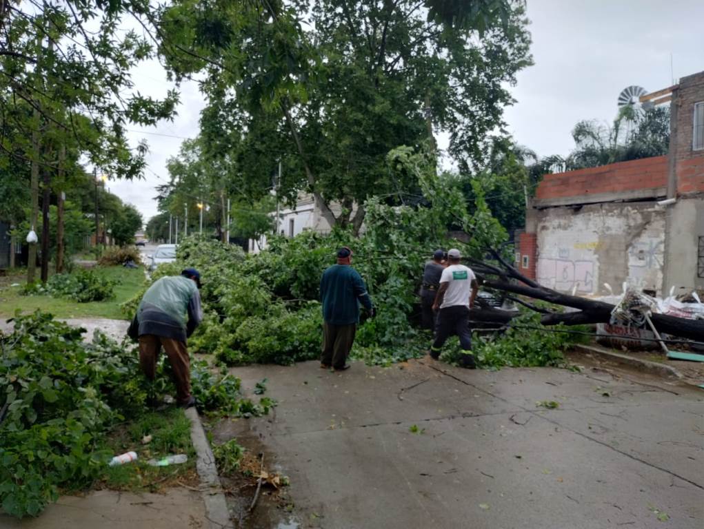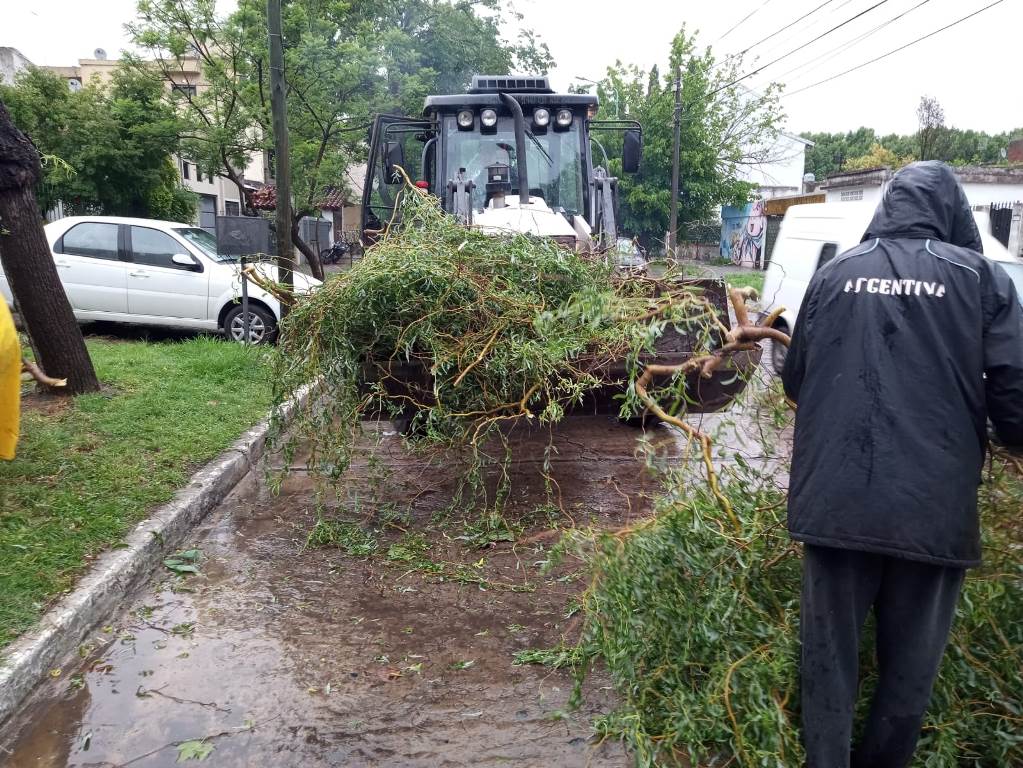 Luego del fuerte temporal, Defensa Civil, Bomberos Voluntarios, fuerzas de seguridad y la Secretaría de Delegaciones siguen trabajando de manera conjunta para brindar atención a los merlenses afectados.
