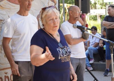 Vecinos participaron de un encuentro con el Secretario de Salud Pública, Walter Videtta, en la Plaza 25 de Mayo, frente al Hospital de Pontevedra, con el objetivo de organizar y reforzar la salud pública en el distrito.