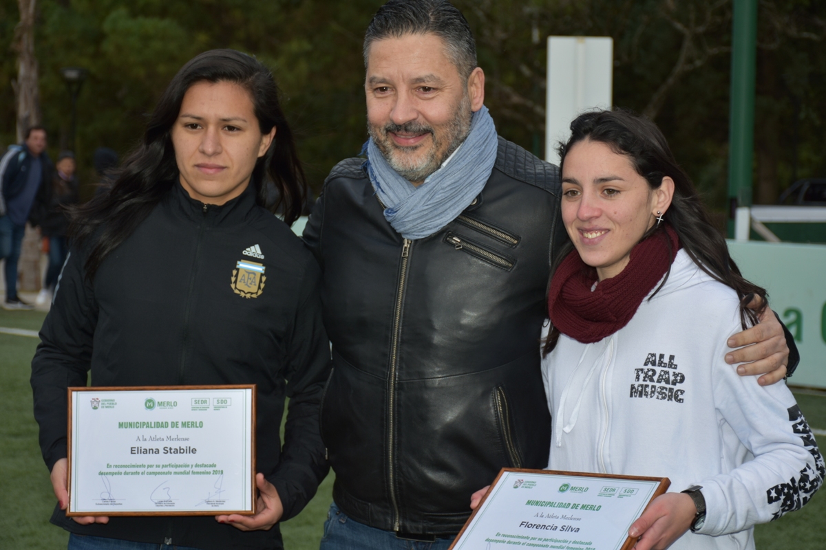 Además, el Intendente le entregó un reconocimiento municipal a Eliana Stabile y Florencia Silva, las jugadoras merlenses de la Selección Argentina de Fútbol Femenino. Eliana tuvo la oportunidad de participar en el Mundial de Francia 2019, donde nuestro combinado nacional realizo una histórica actuación.