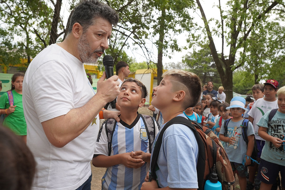 Niños y niñas de las colonias de Asimra y del Club Argentino de Merlo participaron de un encuentro Intercolonias. Gustavo Menéndez acompañó la jornada en donde se brindaron actividades recreativas y deportivas.