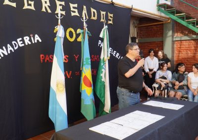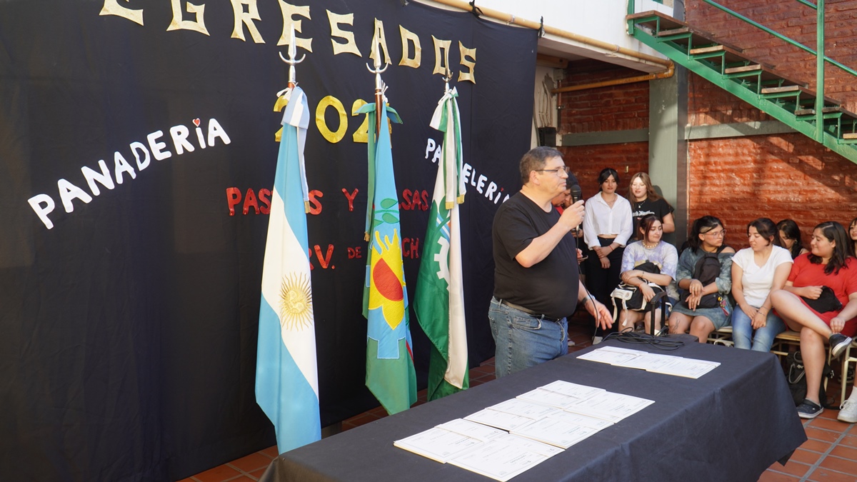 En esta oportunidad, la entrega de certificados correspondió a los cursos de Pastelería, Panadería, Pastas y Salsas, y Servicio de Lunch. “Tuvimos una concurrencia masiva en todos los cursos, lo que nos genera una gran satisfacción. Por suerte la Escuela de Artes y Oficios crece año tras año”, sostuvo el Director Carlos Churio.