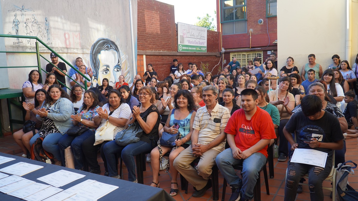 Egresados recibieron sus diplomas de culminación de los cursos gratuitos que la Escuela Municipal de Artes y Oficios brindó durante el segundo cuatrimestre del año. Autoridades municipales, docentes y familiares participaron de la jornada.