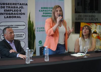 La Secretaría de Desarrollo Económico Sustentable entregó los títulos al alumnado del ciclo 2021 de los cursos de capacitación laboral. En el acto estuvo presente la Intendenta de Merlo, Karina Menéndez, quien acompañó a los estudiantes y a las familias.