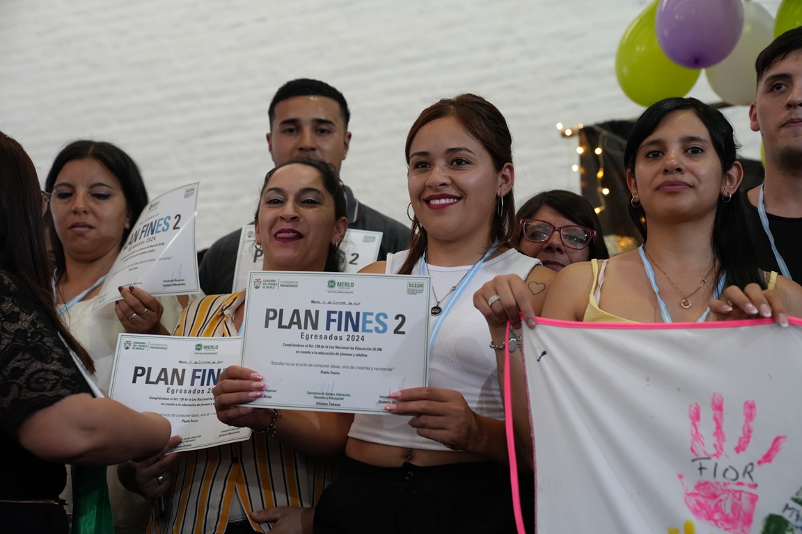 Mil egresados merlenses recibieron sus títulos y medallas por culminar el programa provincial de Finalización de Estudios Primarios y Secundarios. El acto se realizó en el Club Independiente con la presencia del Intendente Gustavo Menéndez, familiares, autoridades locales y la comunidad educativa.