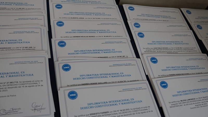 Más de 100 nuevos egresados recibieron sus certificados de Diplomaturas Internacionales en Derecho Constitucional y Magistratura. El acto fue realizado en la Sede Rectorado de la UNO.