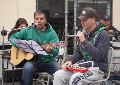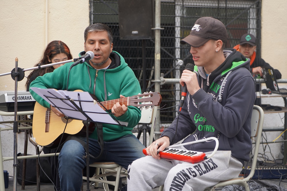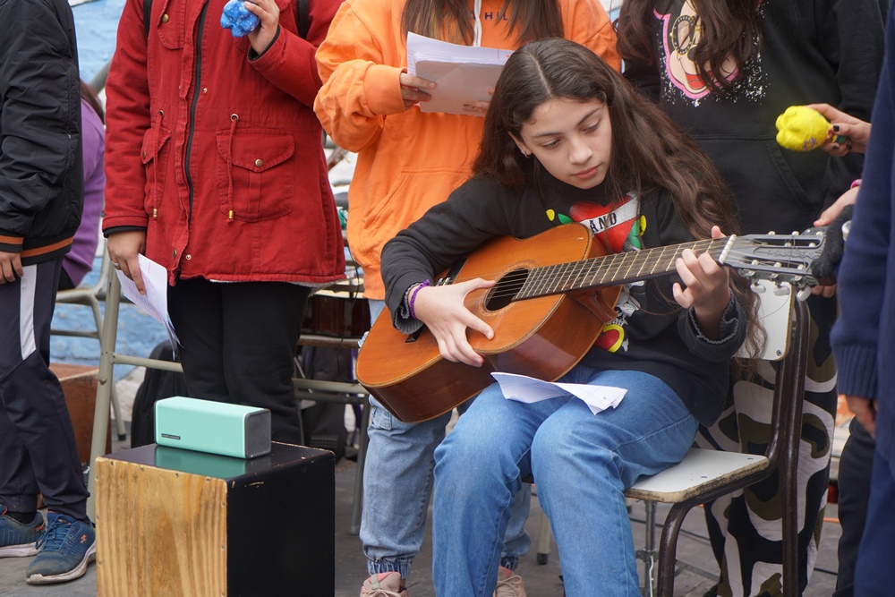 En el marco de una muestra de ensamble musical y danzas, estudiantes de primer a sexto año recibieron la donación de guitarras, un piano eléctrico, bombos legüeros y armónicas para el proyecto educativo en música que lleva adelante la institución. Además, expusieron sus producciones junto a docentes y la comunidad educativa.