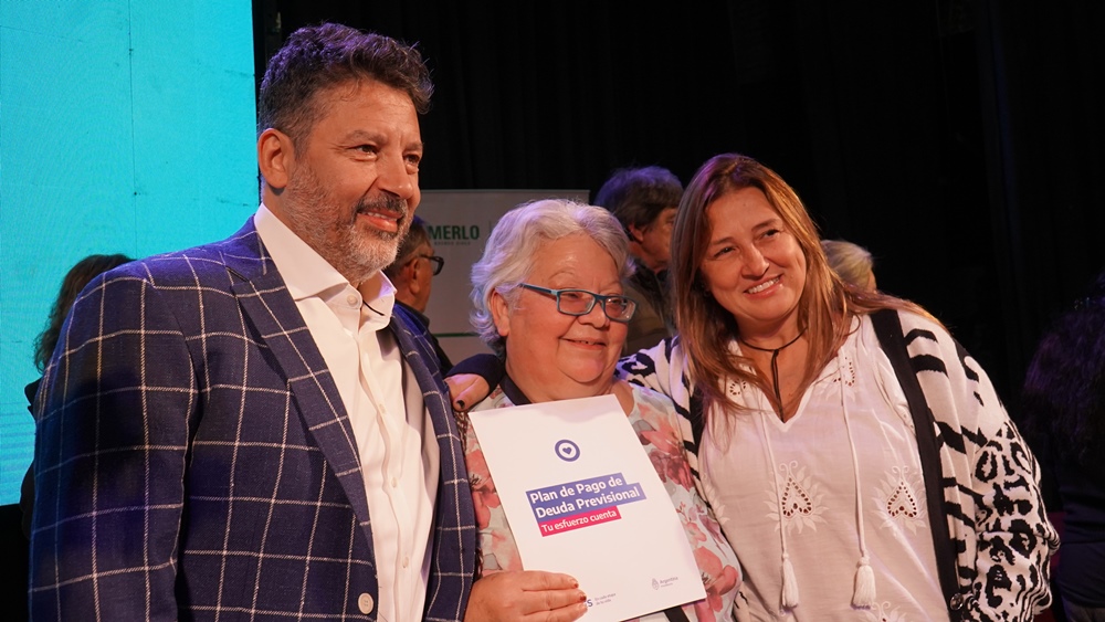 Más de 260 adultos mayores recibieron sus jubilaciones en el marco del Plan de Pago de Deuda Previsional, en un acto encabezado por Gustavo Menéndez, y la Intendenta Karina Menéndez, en el Teatro Municipal de Merlo.