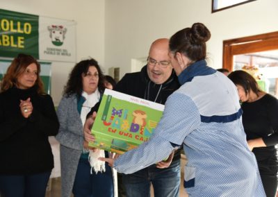 Cada una de las cajas entregadas se compone de 40 libros de literatura infantil y material lúdico destinado a los jardines de infantes de gestión pública y a los Centros de Desarrollo Infantil (CDI) del municipio.