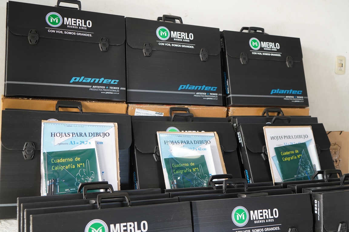 Esta iniciativa de la Secretaría de Educación, Deportes y Recreación, que se implementa en diferentes escuelas, beneficia a más de 1500 alumnos merlenses de primer año y garantiza que cuenten con el material necesario en sus clases.